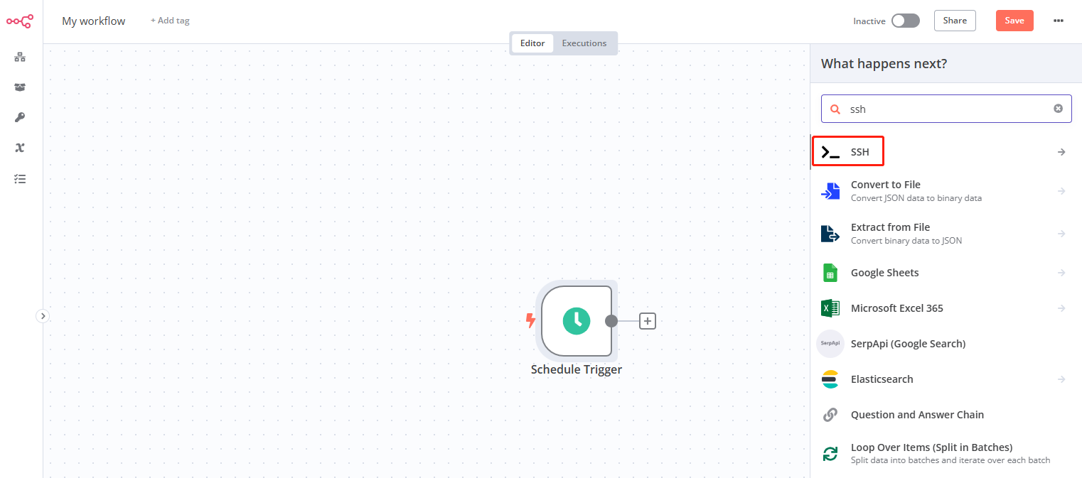 • n8n 控制台,Credentials 页面中新增目标服务器的 SSH 连接账号