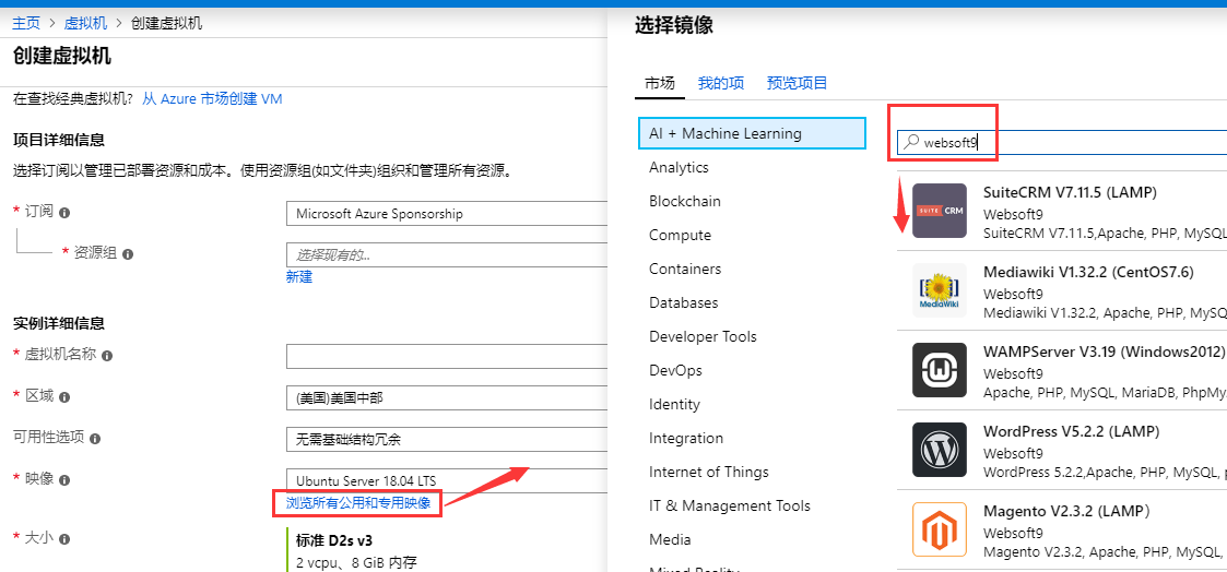 下面的教程介绍如何在 Azure 上部署 Websoft9。