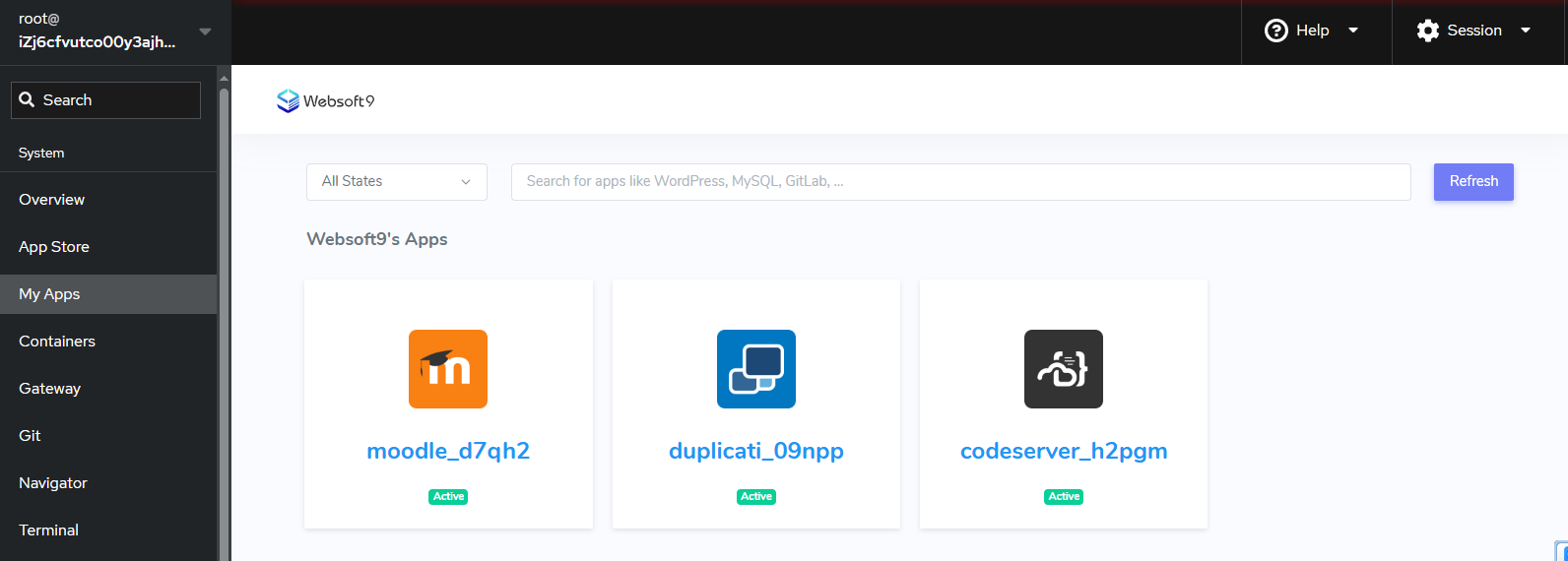 Once completed the installation and login to Websoft9 Console to verify it, you can plan to deploy applications.