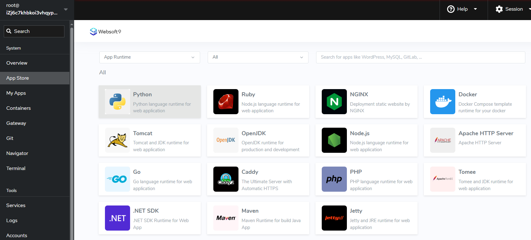 Websoft9 App Runtime includes below types for different use cases: