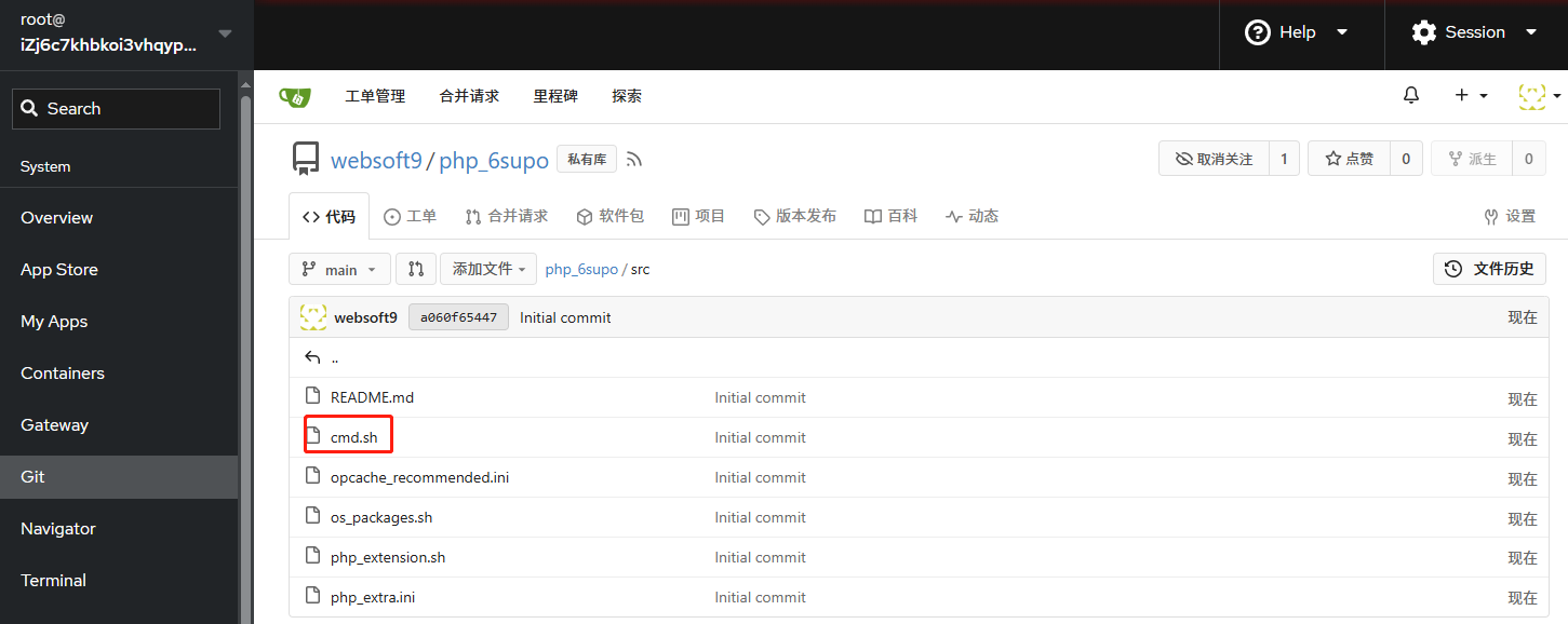 After launching the App Runtime, Websoft9 create three resources for user to deploy source code or binary, includes: