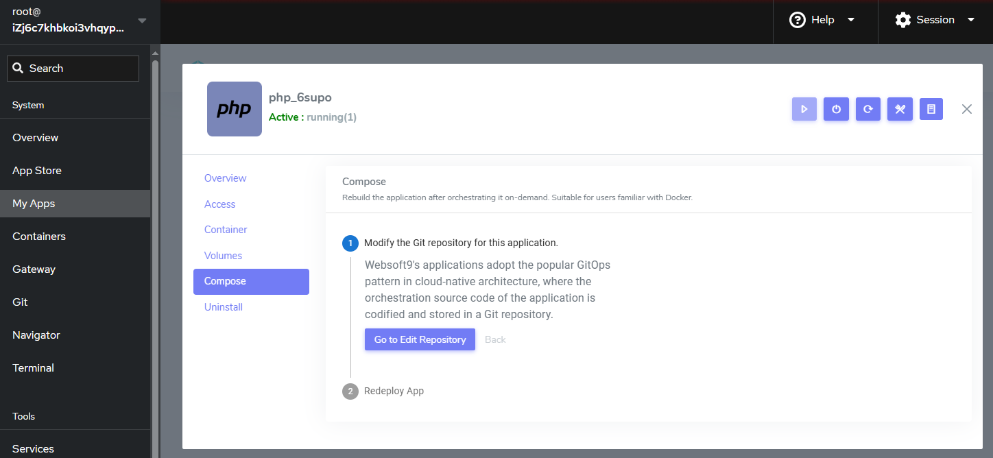 Websoft9 App Runtime enables you to build and host web apps, mobile back ends, and RESTful APIs in the programming language of your choice. It enables automated deployments from GitHub, or any Git repo. It provides a programming language template such as Java, Python, Node.js, PHP, Go, Ruby, and .NET, as well as Docker image and static website deployment.